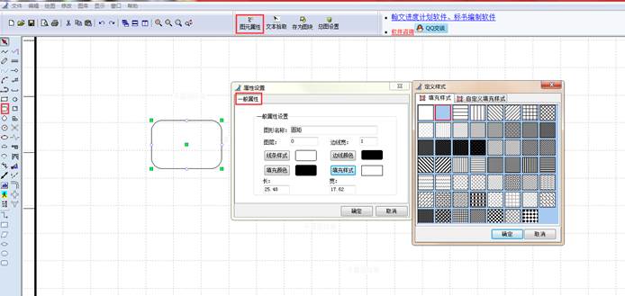 点击“圆矩”工具,在图纸上点击矩形的两个对角点即可完成绘制。用鼠标选中绘制的圆矩形,点击上方工具栏中的“图元属性”,在“一般属性”设置页面,可对圆矩形的图层、边线宽度、线条样式、边线颜色、填充颜色、填充样式,以及圆矩形的长、宽进行修改。