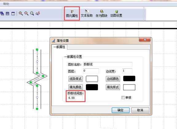 可选中折断线,选择图元属性,设置折断线间距。