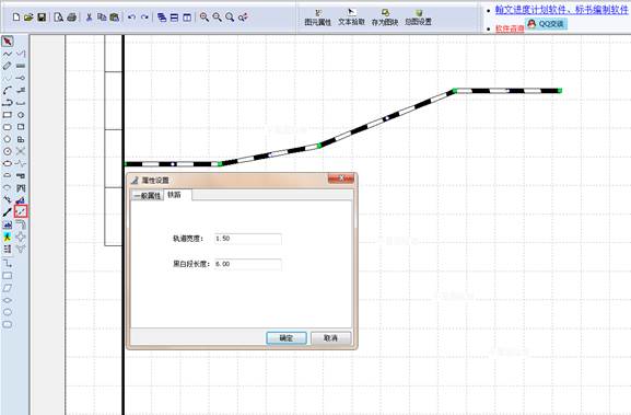 用鼠标选中画的铁路线,点击鼠标右键选择属性,可修改铁轨宽度与铁路黑白段长度。如下图: